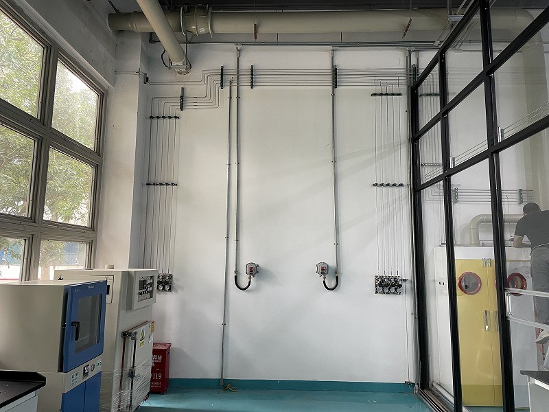4.管路中應(yīng)減少不流動(dòng)氣體的“死空間”,不應(yīng)設(shè)有盲管,在特種氣體的儲(chǔ)氣瓶與用氣設(shè)備之間應(yīng)設(shè)吹掃控制裝置、多閥門(mén)控制裝置、用以控制各個(gè)閥門(mén)的開(kāi)關(guān)順序、系統(tǒng)吹除,以確保供氣系統(tǒng)的安全、可靠運(yùn)行和防止“死區(qū)”形成而滯留污染物,降低氣體純度。